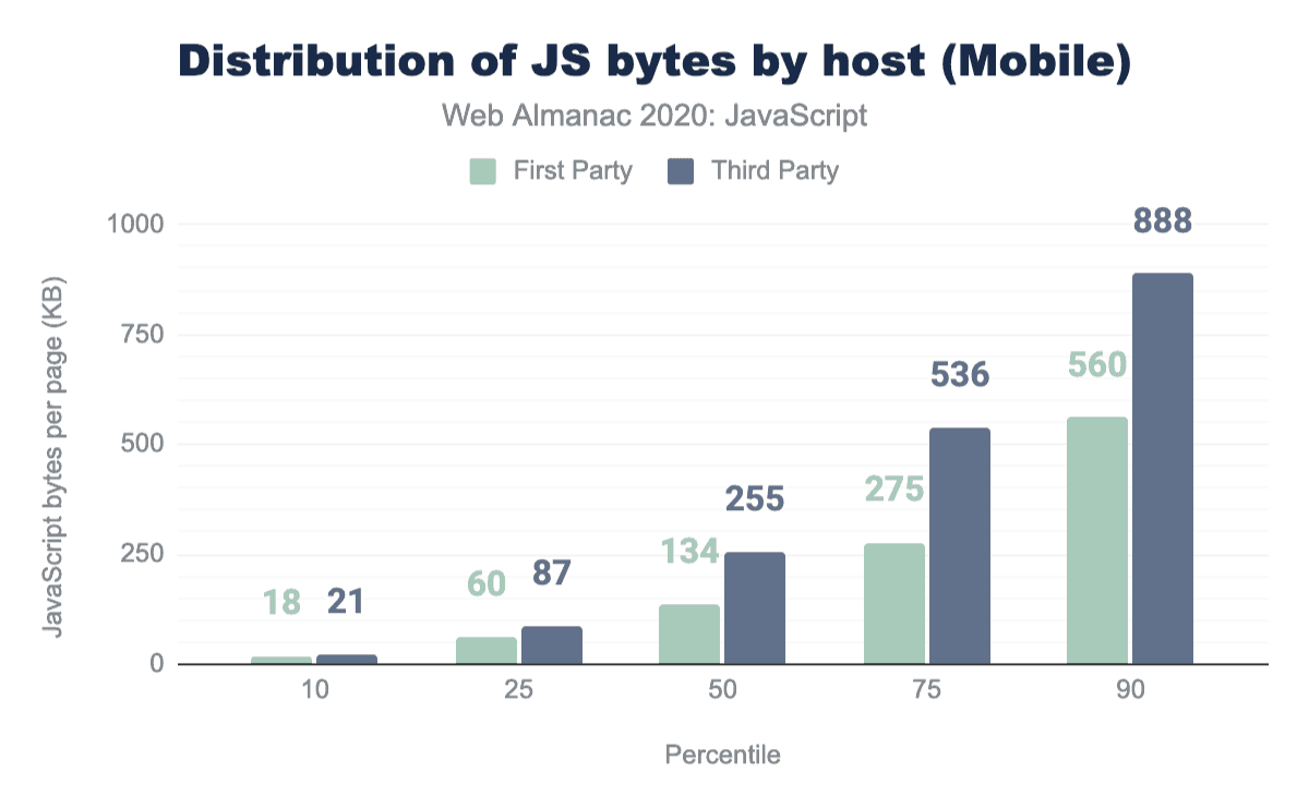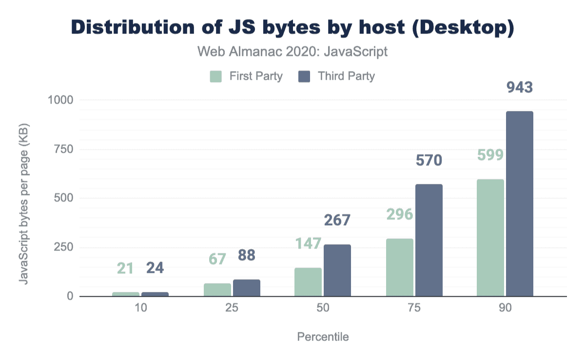 One trend that likely contributes to the increase in JavaScript used on our pages is the seemingly ever-increasing amount of third-party scripts that get added to pages to help with everything from client-side A/B testing and analytics, to serving ads and handling personalization.